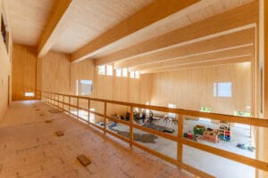 At the heart of The Duke’s design is mass timber — a material that aligns with our commitment to sustainability, innovation, and craft. Mass timber offers significant environmental advantages by reducing embodied carbon compared to traditional steel or concrete structures. Its engineered strength allows for lighter foundations, while prefabrication enables faster, more precise construction. Beyond performance, mass timber also brings warmth and beauty to the built environment, creating inviting spaces that resonate with both form and function. Mass timber continues to be a design philosophy that builds upon the team’s craftsmanship, and supports a more sustainable, efficient, and inspiring future for architecture.