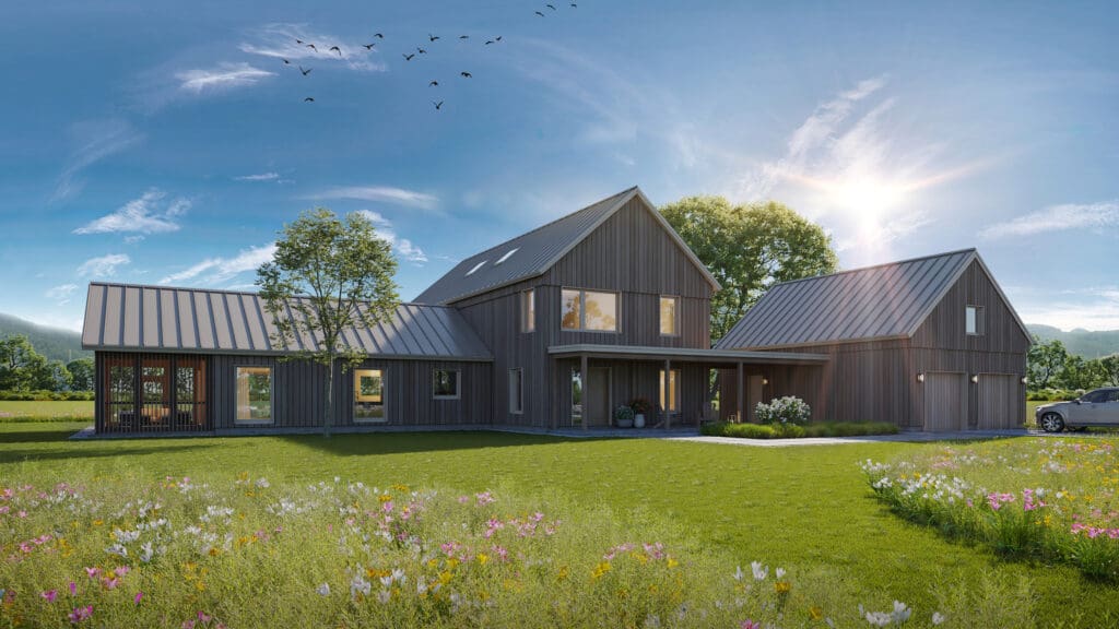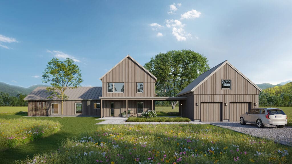 This two-story plan is the largest offering and includes a generously sized first floor primary suite. A large, open front porch and breezeway connect to an expanded two-car garage which has additional space for storage. The kitchen and dining spaces greet you from the large entry and the adjacent living room connects to a screen porch. The second floor has four large bedrooms and two full bathrooms with an open stairwell that brings natural light down into the first floor.
