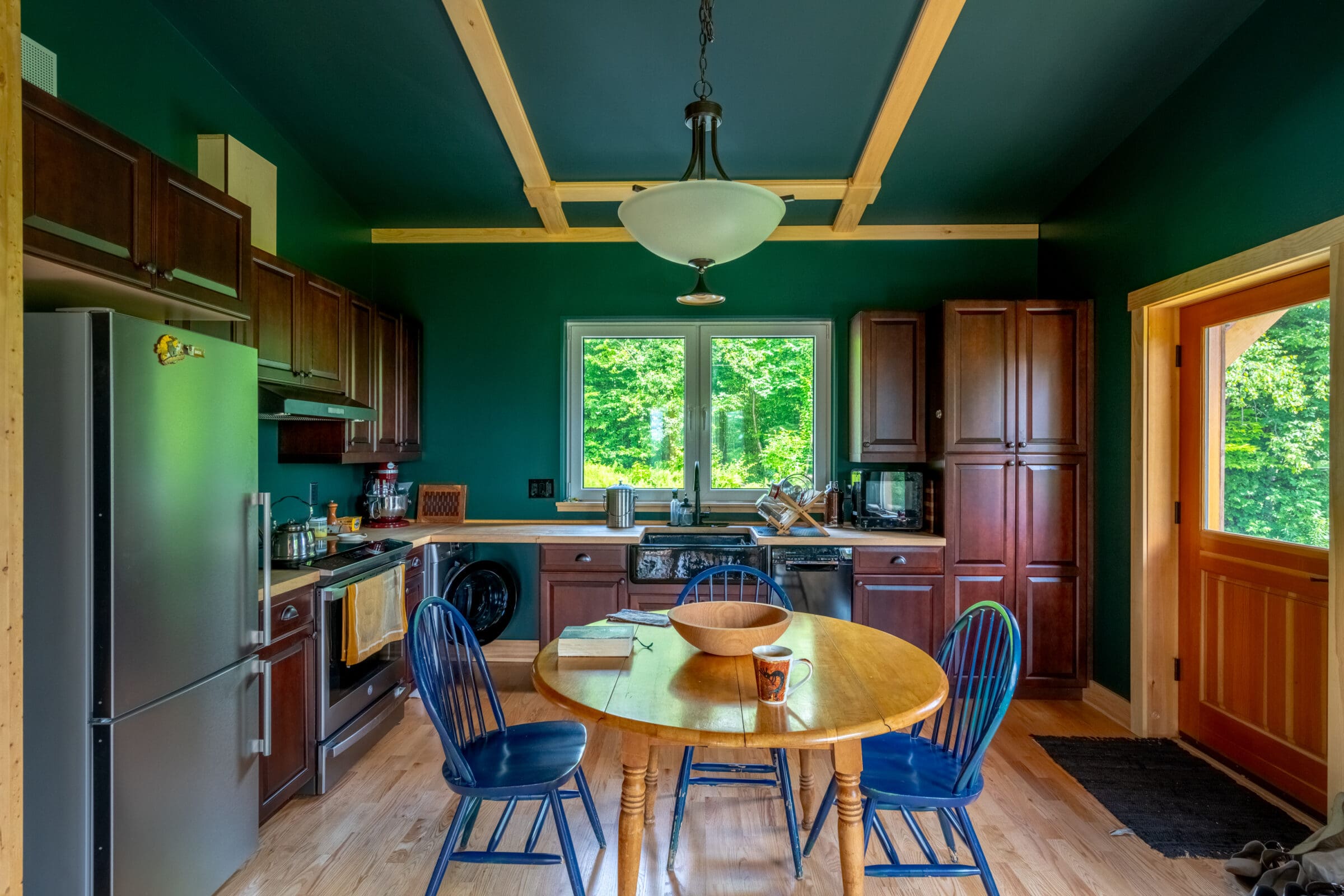 To save money, the couple took on the role of general contractor, finishing the home themselves after it was raised by the Bensonwood crew. Despite having no prior construction experience, they were motivated, resourceful, and did extensive research to make their “DIY” forever home possible. They also purchased select finished items through Unity’s Tempo package, including light fixtures and sinks, which were conveniently delivered to their site when needed.