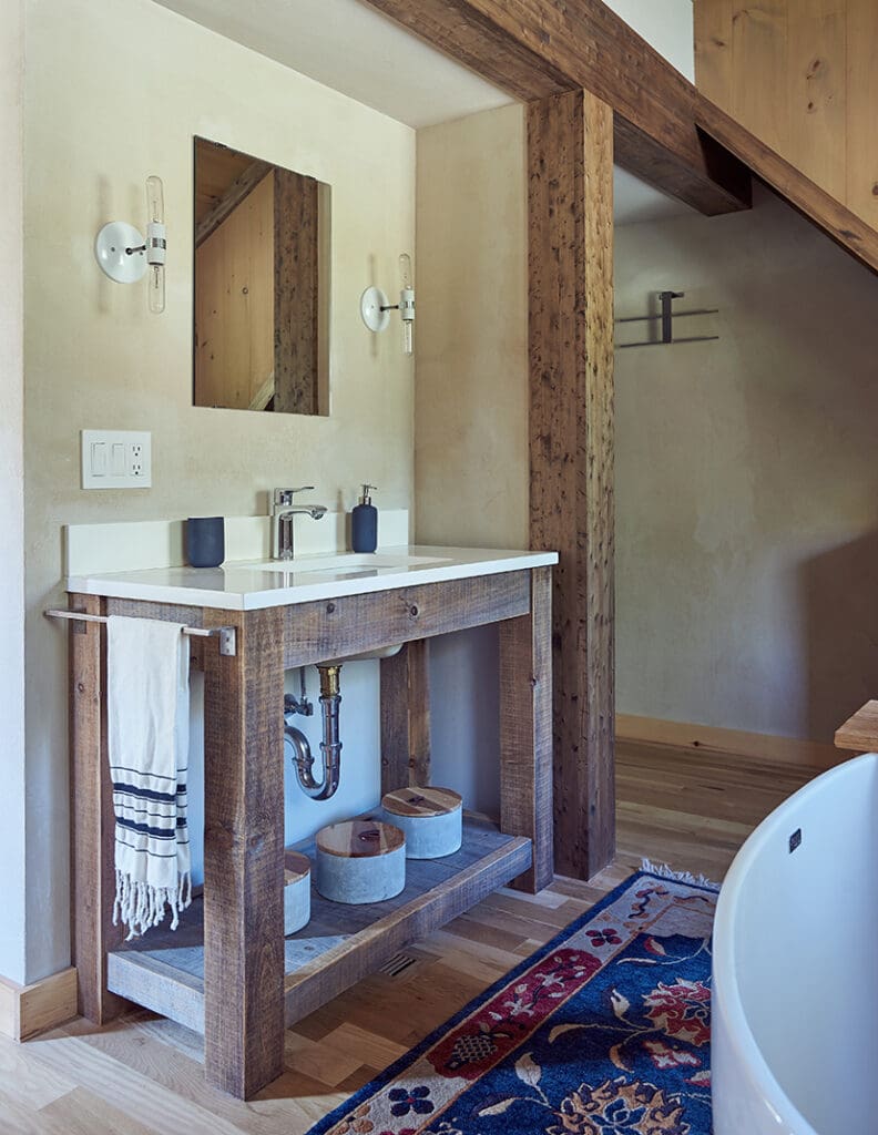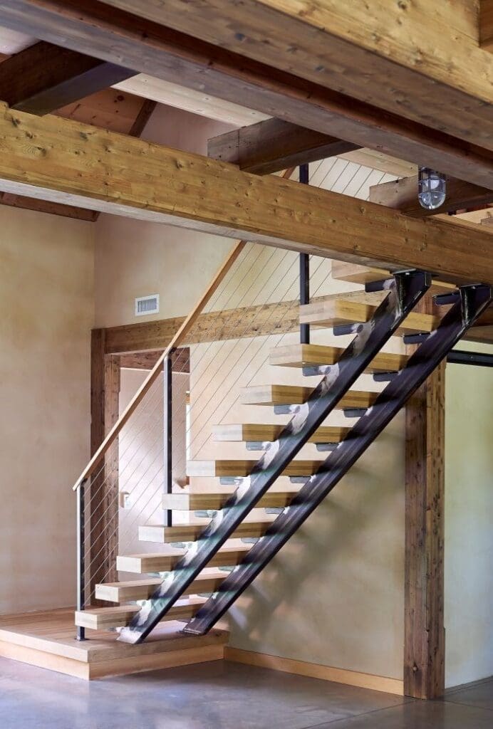 This home blends the classic dormered barn style with industrial finishes for an eclectic style. Extensive use of NordicLam in the timberframe, rafter battens, timber stair and trim accents add to the modern feel. The home was built with slab on grade construction.