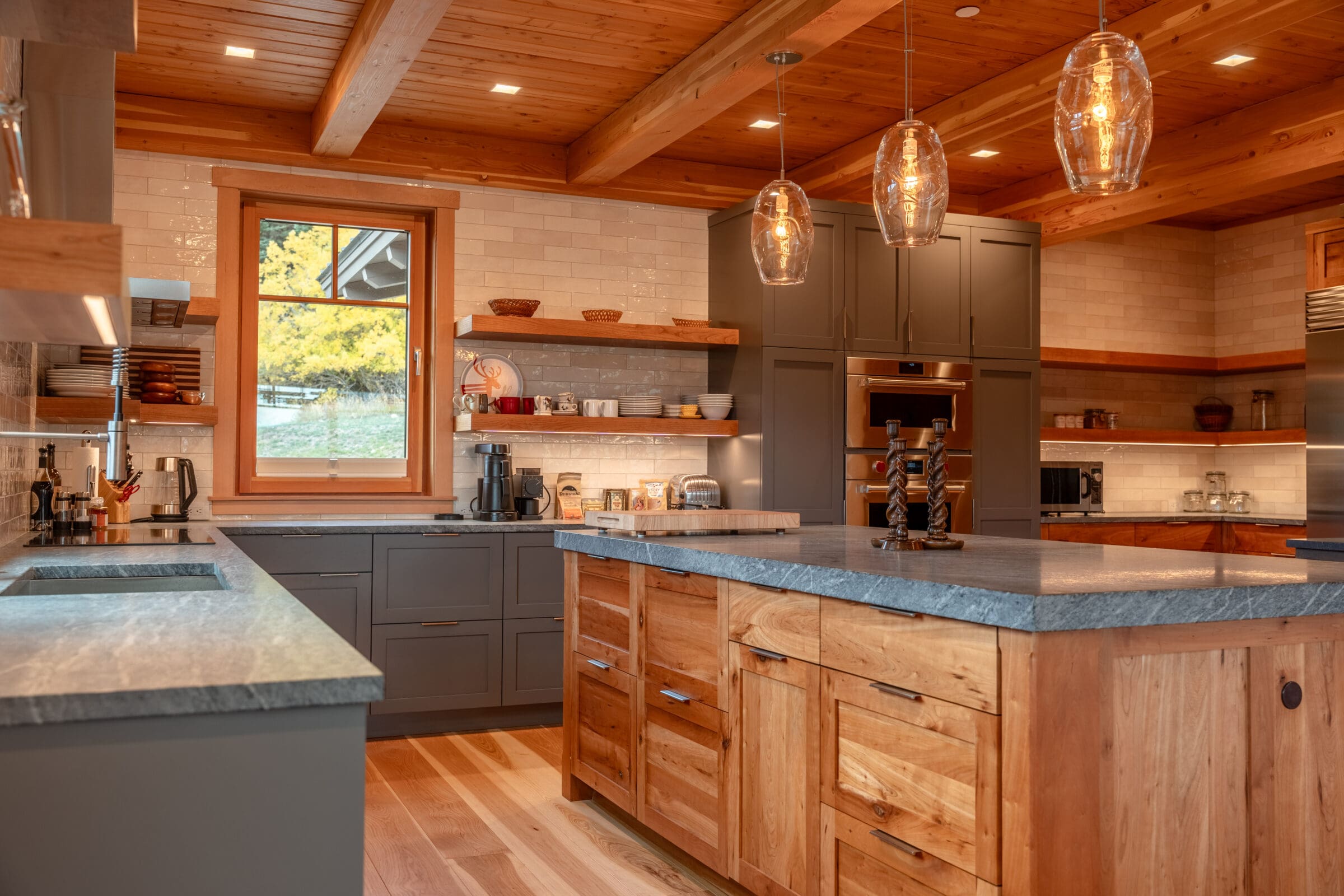 In a region defined by labor shortages and a short building season, our panelized approach offered a clear advantage—allowing a four-person Bensonwood crew to raise the home in under four weeks. The site’s panoramic view up a river valley offers a striking backdrop for a home designed for comfort and performance. As the first all-electric residence on the mountain, it features an efficient air-to-water heating system and a solar array. Together, these help make the home as low impact as possible, setting a precedent in an area where large expansive homes typically do not prioritize energy efficiency.