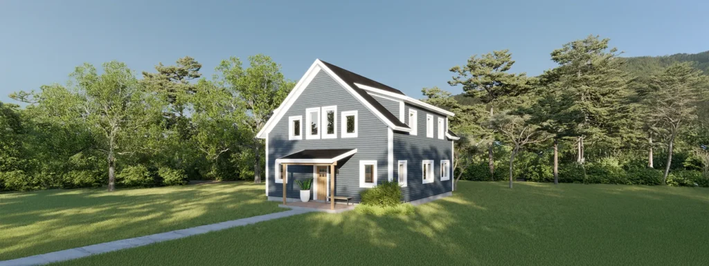 This gable-presenting Tradd has an effortless charm and the most elaborate exposed timber frame. Without dormers, the simplified roof provides cost savings and more space for future solar panels. The open main floor allows the primary areas to be separated while easily accessible from a central walkway, with a formal dining corner nestled between the kitchen and living areas. There is plenty of pantry and closet space on the first floor, providing extra storage. Take the switchback staircase to the second floor, where three sizeable bedrooms are removed from first-floor noise, offering additional flex space for family, guests, or an office. A shared second-floor laundry area between the bedrooms makes doing chores a breeze, without going up and down stairs. The primary bedroom has large walk-in closets—a staple feature of the Tradd design.