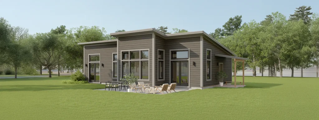 The Zum is Unity’s most contemporary design, defined by a sleek mono-pitch roof, expansive windows, and a linear layout that gives every room a view. Exposed timbers bring warmth to the modern architecture, while an optional bump-out expands the living area. Whether you’re building a spacious retreat or an energy-efficient ADU, the Zum blends style, sunlight, and performance in one-level living.